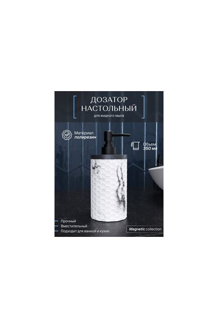 Дозатор д/жидкого мыла 350мл, полирезин, белый/черный "Fora Magnetic" MGN021