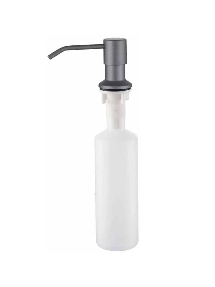 Эффективное решение для рационального использования пространства: встроенный дозатор объемом 400 мл в элегантном графитовом исполнении идеально впишется в интерьер современной кухни. Подходит для монтирования в мойки, столешницы или раковины, обеспечивая удобный доступ к моющему средству без лишних флаконов на рабочей поверхности.