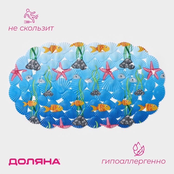 Коврик д/ванной "Морские игры" 37*65 см, на присосках 1842957 в Переяславка