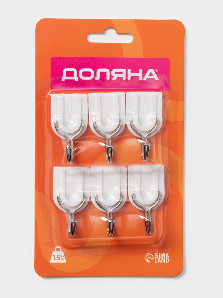 - В упаковке 6 белых пластиковых крючков