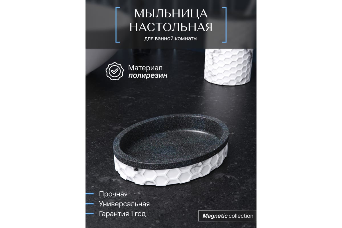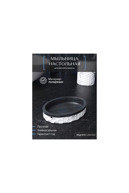 Мыльница настольная, полирезин, белая/черная "Fora Magnetic" MGN036 в Переяславка