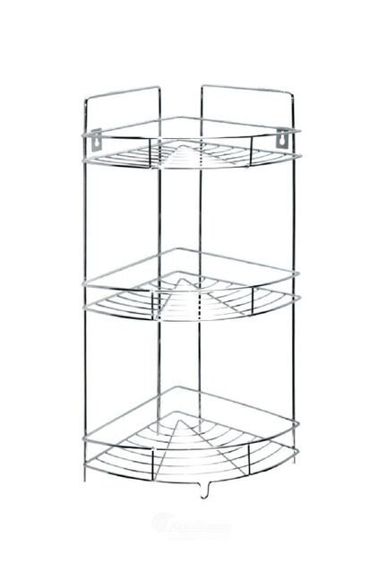 Размеры (Г*Ш*В), см 21,5*29*51,5 Материал:Хромированная сталь Трехъярусная угловая полка 21,5×29×51,5 см из хромированного металла — организация хранения, экономия пространства и стойкость к влаге.