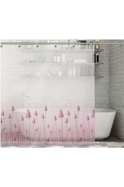 Освежите вашу ванную комнату стильной и функциональной занавеской с изысканным лавандовым мотивом — практичное решение для защиты от брызг и создания уюта.