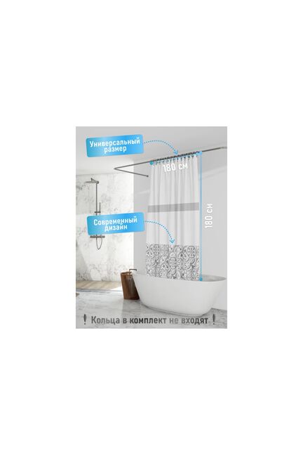 Штора д/ванной "Patchwork" 180*180см, полиэстер, белая FOR-PH-PATCH в Переяславка