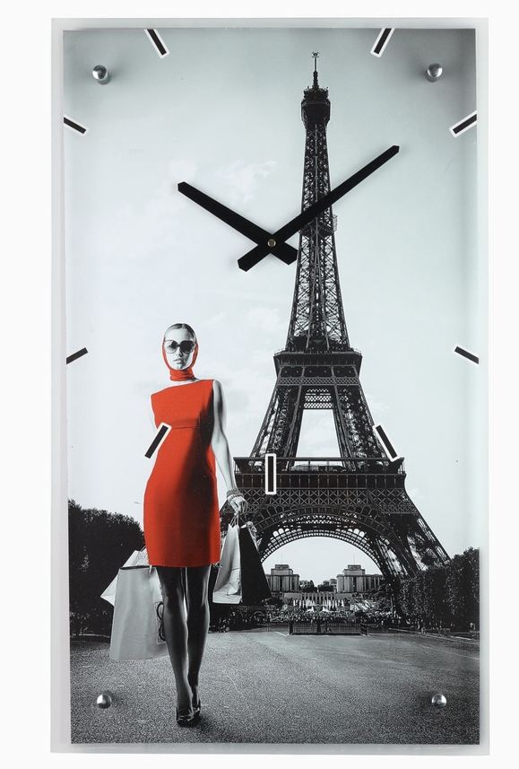 Часы-картина настенные (35*60) "Девушка в красном платье в Париже" 1146603 в Переяславка