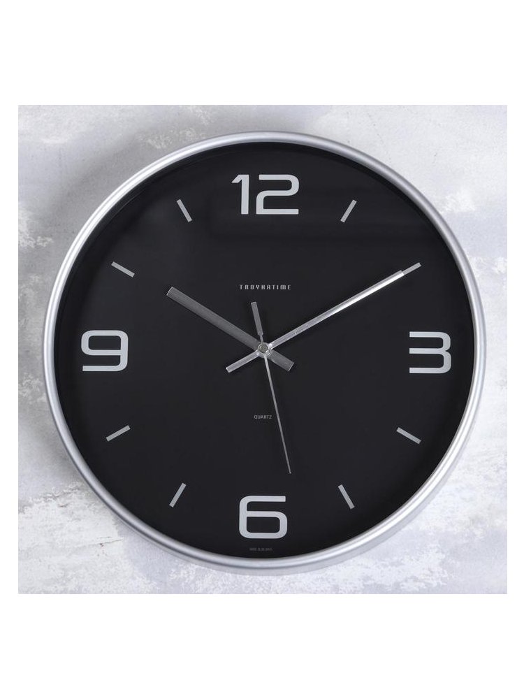 Цвет: Чёрный Форма: Круглая Ширина, см: 30.5 Высота, см: 30.5 Тип индикации: Арабские цифры Тип механизма: Кварцевый Цвет циферблата: Чёрный Материал: Пластик Типоразмер батареек: AA (LR6) Цвет корпуса: Серебристый Стильные часы 30,5 см, крупные цифры, бесшумный механизм. Подходят для дома, офиса, удобный монтаж, прочный пластик и лаконичный дизайн.