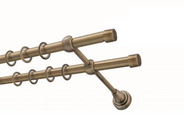 Карниз кованый гладкий 2-рядный, диаметр 16 мм, длина 1,8 м, цвет "Антик золото". Прочный металл, стильный дизайн, для штор разной плотности.