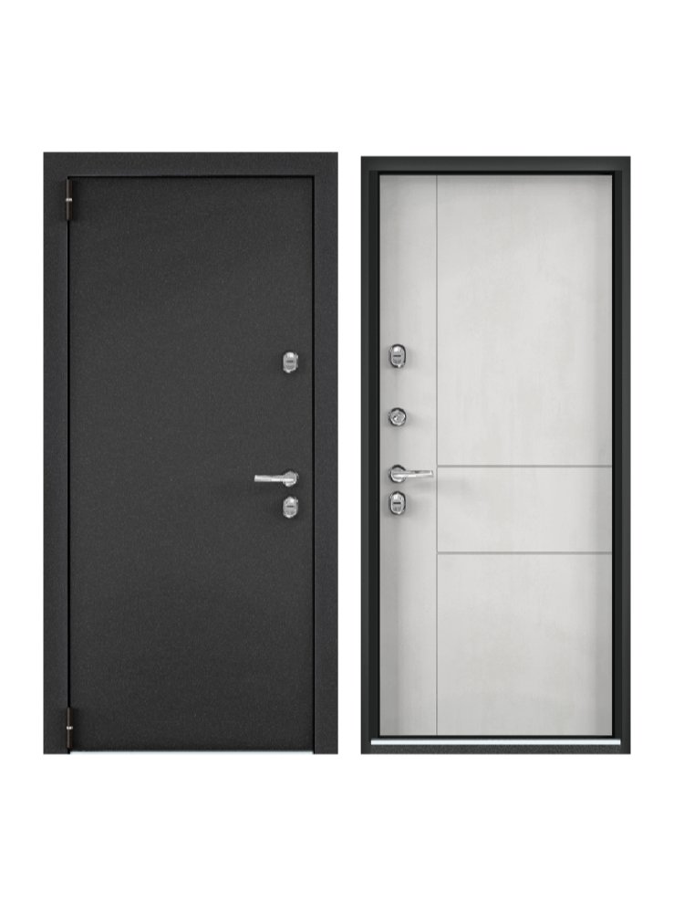 Верхний замок: Border 3В 8-8Г/15, 4 класса взломостойкости. Нижний замок: Crit A30-4Л, 2 класса взломостойкости. Декоративные накладки на ключевину сувальдного замка с направляющими для ключа и подпружиненными шторками от продувания. Противосъемные ригели: 2 шт. Ночная задвижка. Тип внешней отделки: Порошково-полимерное покрытие. Тип внутренней отделки: Панель МДФ с ПВХ покрытием.