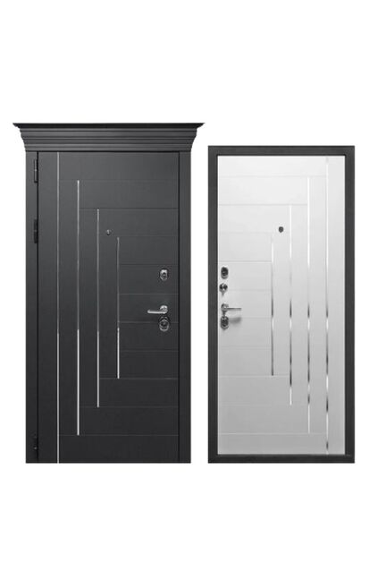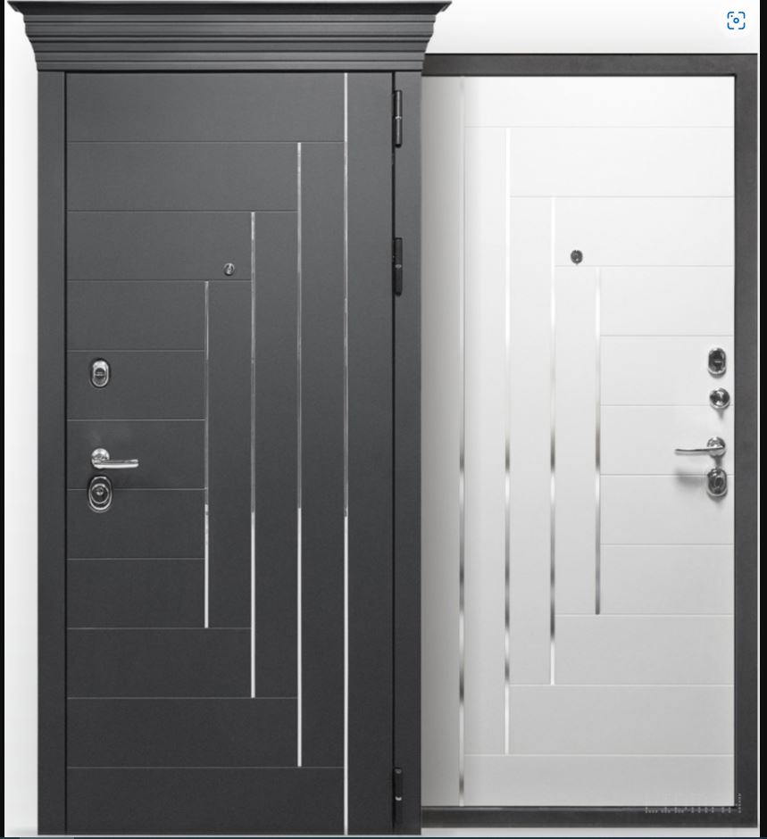 Внешнее покрытие: Софт черный, МДФ 10 мм, Молдинг хром Внутреннее покрытие: Белый софт, Молдинг хром, фрезерованная МДФ-панель 10 мм Толщина дверного полотна: 106 мм. Глубина дверного короба: 125 мм Наполнитель: Базальтовая плита Уплотнитель: 3 контура вставного уплотнителя Ручка: раздельная Краска: Порошково полимерное покрытие, Муар, черный с блестками Глазок: широкого обзора Петли: 3 шт., наружные, открывание 180° Дополнительный замок: сувальдный Гардиан 30.01 Прочная металлическая дверь 860 мм с капителью, покрытием soft-touch, с отличной шумо- и теплоизоляцией, системой замков для надёжной защиты.