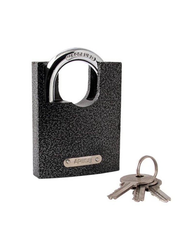 - Усиленная защёлкивающаяся скоба препятствует взлому и высверливанию.
