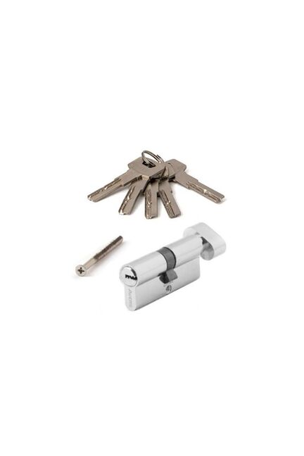 Цилиндровый механизм длиной 70 мм с ключом/вертушкой выполнен из прочного сплава с хромированным покрытием, отличается надежностью и устойчивостью к взлому. Поставляется в комплекте с пятью английскими ключами и крепежным винтом. Надежная штифтовая система обеспечивает оптимальную безопасность использования, а универсальный тип профиля стандарта евроцилиндра подходит ко многим дверным замкам. Механизм совместим с входными и межкомнатными дверями из дерева и металла, обеспечивая плавный и легкий поворот даже при интенсивной эксплуатации.