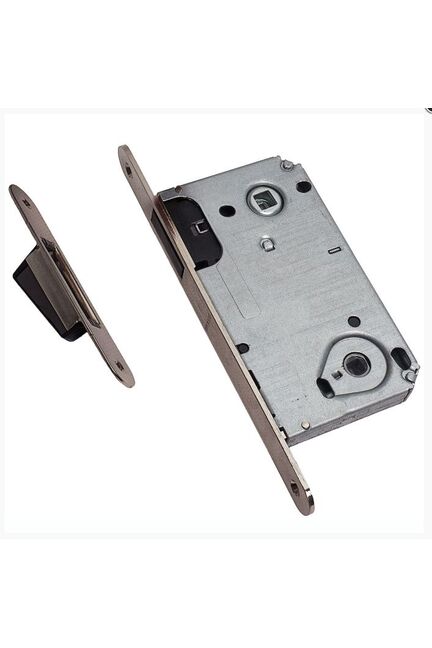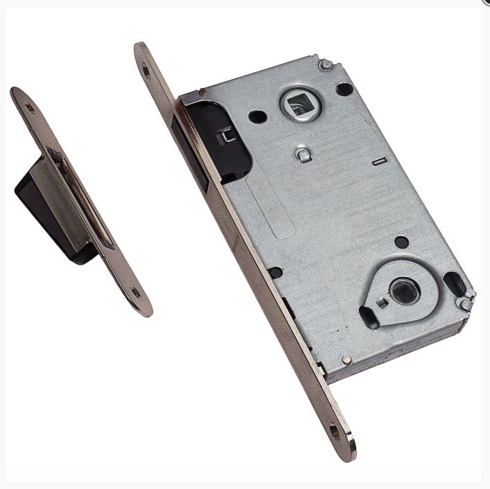 Магнитная врезная защёлка с фиксацией под поворотную ручку, для межкомнатных дверей, никелированное покрытие, тихий ход и простота монтажа.