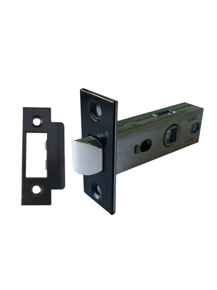 Современная металлическая защелка без фиксации, черный матовый, для надежной установки на межкомнатные двери, устойчива к износу и коррозии.