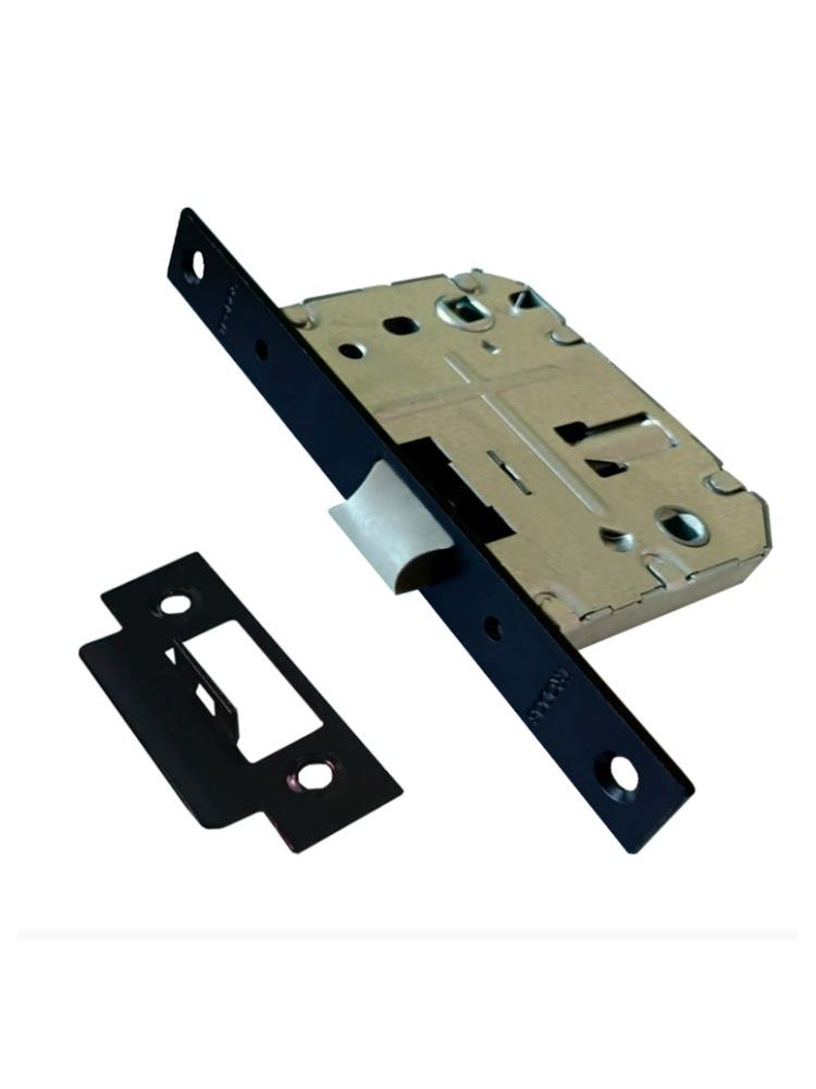 Стильная пластиковая защелка с матовым черным покрытием для межкомнатных и санузловых дверей, надежная фиксация и легкий монтаж.