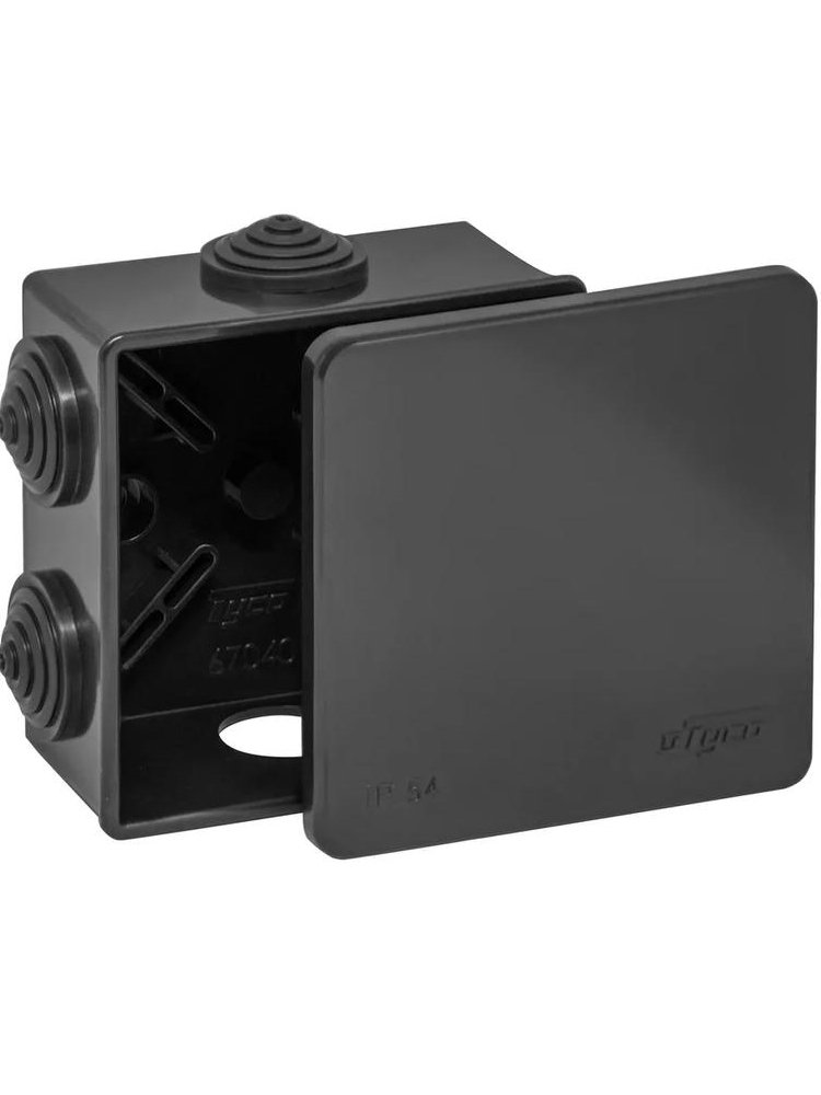 Наружная коробка 85×40 мм, IP54, черная, с герметичными втулками для безопасных электросоединений в любых помещениях и защите от пыли и влаги.
