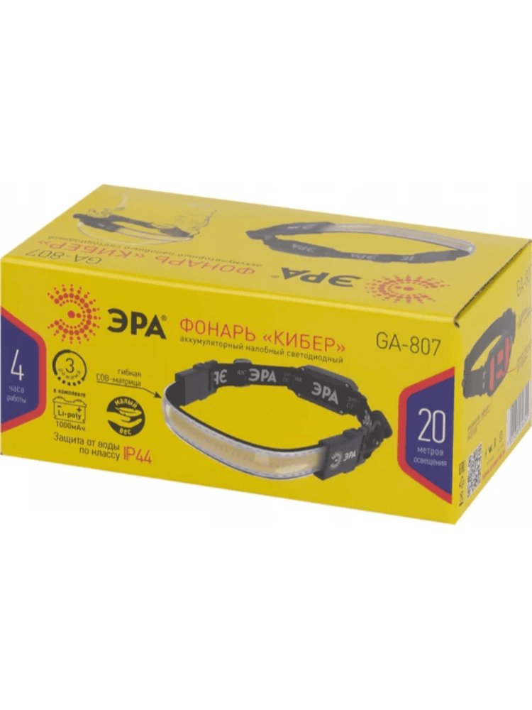 Фонарь налобный GA-807 5Вт COB, Li аккум,3реж. mini USB,ЭРА