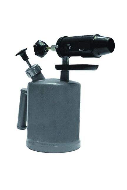 Применяется для получения направленного пламени высокой температуры. Допустимое рабочее давление 0.25 - 0.35 Мпа. Может работатьт на осветительном керосине и бензине не ниже АИ-76. Объем 1,5 л. Расход горючего 1.2 л/ч. Материал: емкость с насосом – сталь, сопло – сталь, рукоятка насоса и регулятора подачи топлива – пластик. Объем 1 л, топливо — бензин, быстрое и стабильное пламя, удобная ручка. Для пайки, нагрева и технических работ без подключения к электросети.