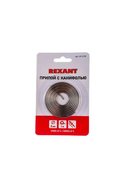 Припой d2мм с канифолью (олово 60% свинец 40% флюс 2.2%) спираль 1м REXANT