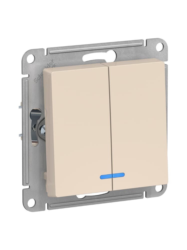 Выключатель 2-клавишный механизм, бежевый с подсветкой AtlasDesign SE