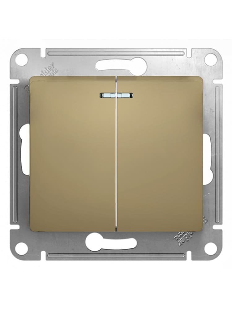 Выключатель 2-клавишный механизм, титан с подсветкой Glossa SE