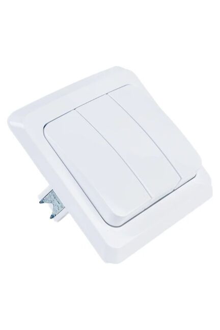 Трёхклавишный выключатель идеально подходит для управления освещением в жилых, офисных и коммерческих помещениях. Простая установка накладным способом облегчает монтаж даже в уже готовых интерьерах.
