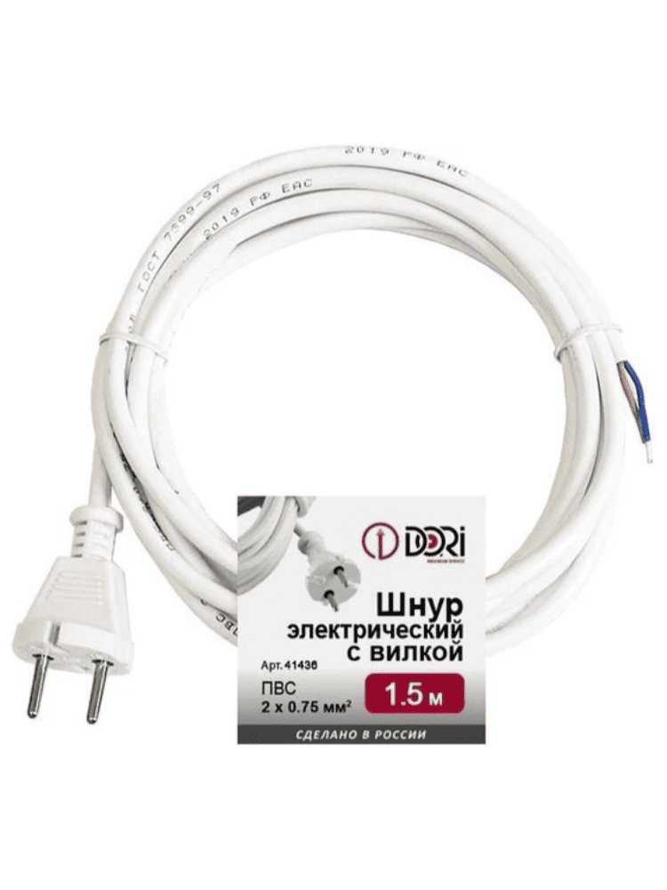 Надежный и универсальный шнур с вилкой длиной 1,5 м идеально подходит для подключения бытовых приборов и электромонтажных работ дома, в офисе или мастерской. Прочный провод из меди с двойной изоляцией ПВС 2×0,75 обеспечивает безопасную и стабильную подачу электроэнергии, предотвращает перегрев и минимизирует риск короткого замыкания.