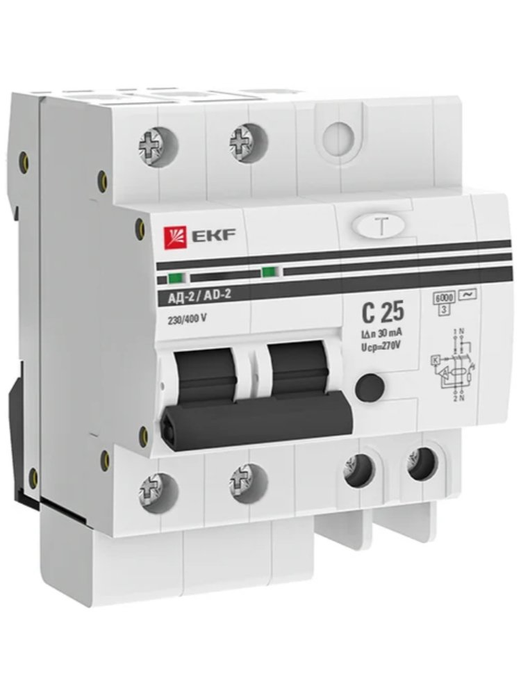 Автоматический дифференциальный выключатель на 2 полюса с номинальным током 25 А и током утечки 30 мА от EKF серии PROxima предназначен для защиты электрических цепей от перегрузок, коротких замыканий и токов утечки, обеспечивая безопасность эксплуатации оборудования. Устройство сочетает в себе функции автоматического выключателя и УЗО, что позволяет экономить место в электрощите. Корпус изготовлен из прочного пластика, устойчивого к механическим повреждениям, а конструкция обеспечивает простоту монтажа на DIN-рейку. Выключатель соответствует современным требованиям безопасности и имеет высокую степень защиты от ложных срабатываний. Это надежное решение для защиты бытовых и коммерческих электросетей.