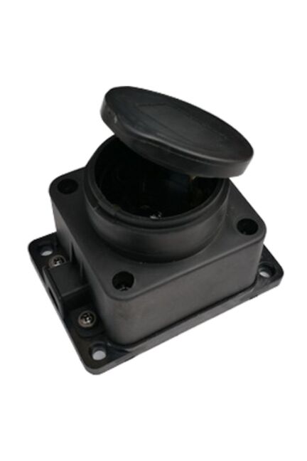 Каучуковая розетка с защитной крышкой, IP44, 16А – устойчива к влаге и пыли, идеально для гаража, мастерской и улицы.