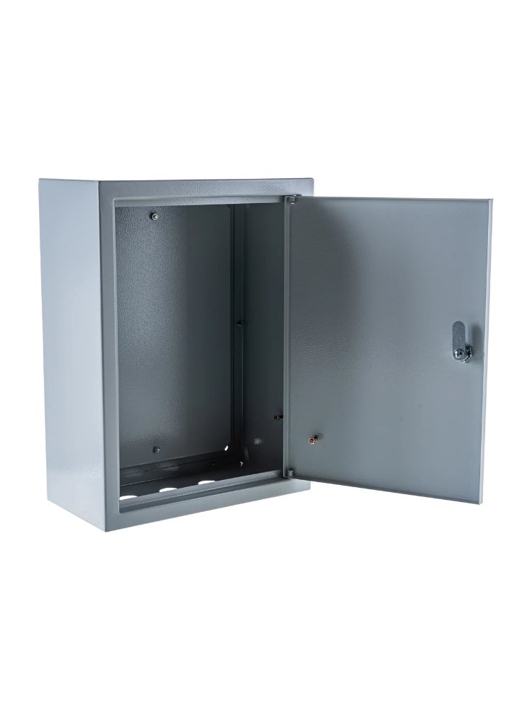 Металлический корпус 400×300×155 мм, толщина стали 1,2 мм, степень защиты IP31, монтажная панель в комплекте, порошковое покрытие.