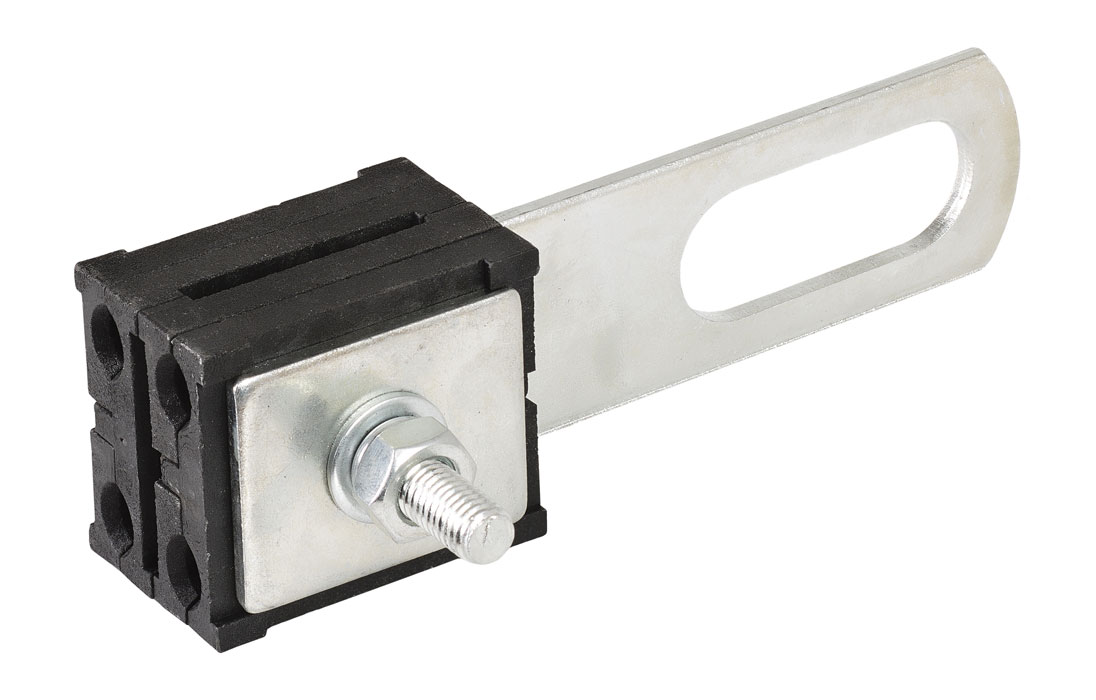 Зажим анкерный PA-4х(10-50) предназначен для натяжного или поддерживающего крепления провода СИП-4 на магистрали и ответвлениях от магистрали, а также на ответвлениях к вводам в здания и сооружения. Поддерживающее крепление - при повороте плашек на 90°. Металлические части зажима изготовлены из стали с последующей оцинковкой, вставки изготовлены из пластмассы, армированной стекловолокном. Зажим устойчив к УФ излучению, повышенной и пониженной температуре, к тепловому и световому воздействию солнечной радиации. Зажим для проводов 10–50 мм², быстрый монтаж без зачистки, прочный корпус, стойкость к влаге и УФ, подходит для временных и постоянных соединений.