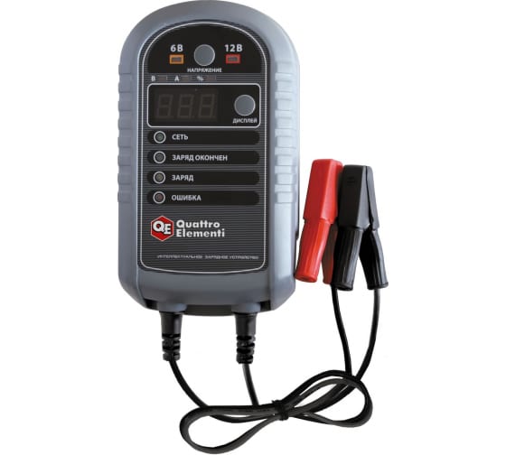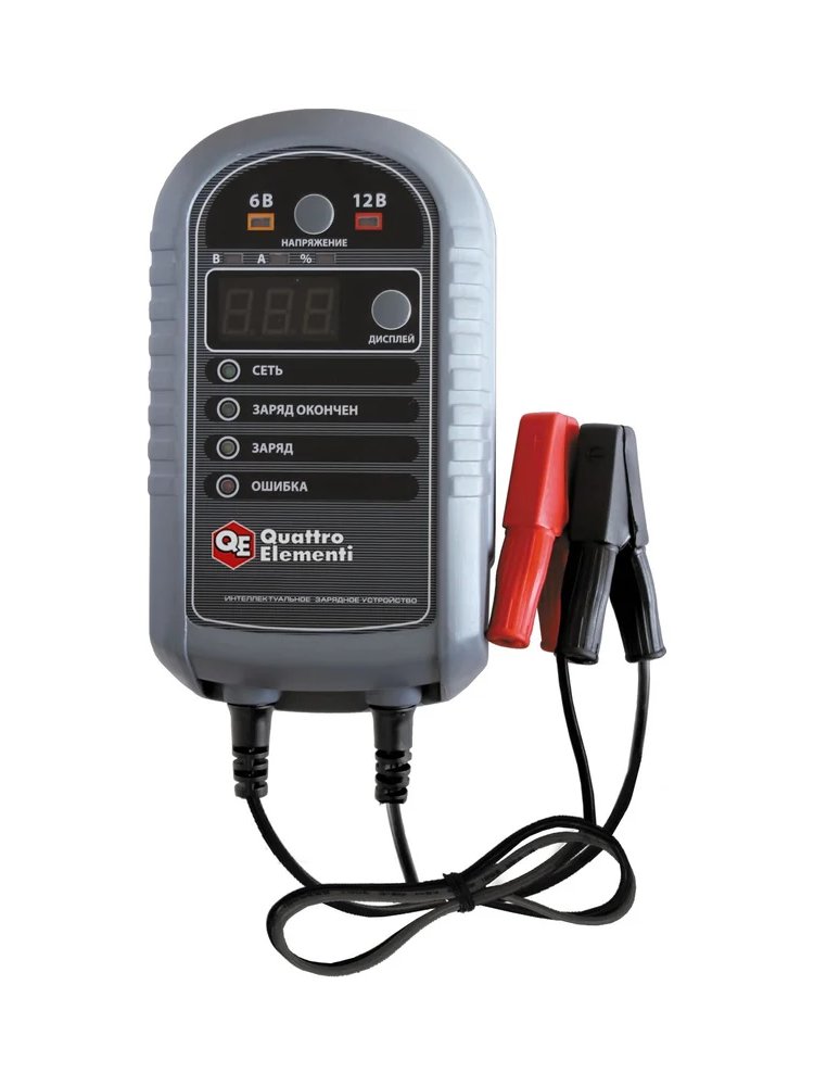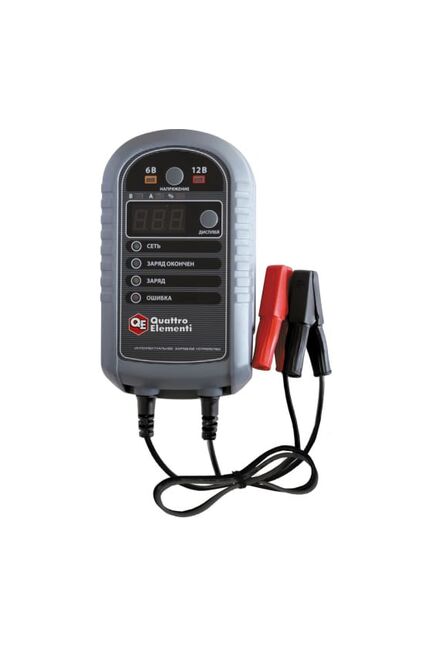 Зарядное устройство QUATTRO ELEMENTI i-Charge 7 полный автомат 771-695 благодаря схеме, основанной на высокочастотном преобразовании бережно снабжает аккумуляторные батареи автомобилей и мотоциклов качественным электрическим зарядом. Подключение к аккумулятору производится посредством специальных зажимов (крокодилов), которые обеспечивают надежный контакт без потери тока номинальным значением 2.5 А и 3 А для двух режимов - 6В и 12 В соответственно. Особенности зарядного устройства QUATTRO ELEMENTI i-Charge 7 771-695 Визуальный контроль Наблюдение за всеми параметрами рабочего процесса зарядного устройства QUATTRO ELEMENTI i-Charge 7 полный автомат 771-695 осуществляется с помощью цифрового дисплея и световых индикаторов. Автоматическое зарядное устройство 12В 7А, с защитой, режимом поддержки заряда и функцией восстановления глубоко разряженных АКБ.