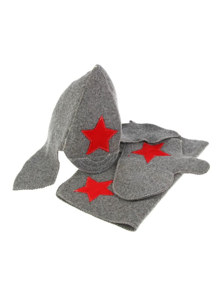 Набор для бани и сауны из фетра в сером цвете представляет собой комплект аксессуаров, включающий шапку, рукавицу и коврик. Эти изделия изготовлены из натурального фетра, который отлично защищает кожу от высоких температур и обеспечивает комфорт во время банных процедур. Шапка предотвращает перегрев головы, рукавица защищает руки при работе с горячими предметами, а коврик создает удобство и гигиену при сидении на горячих поверхностях. Комплект отличается долговечностью, устойчивостью к износу и простотой ухода.