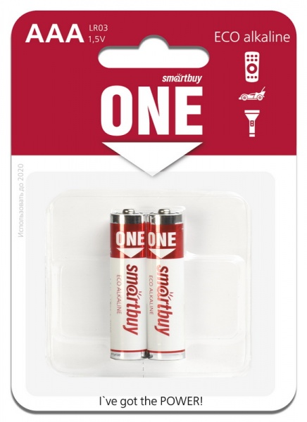 Батарейка Smartbuy LR03-2BL ONE ECO alkaline блистер 2 (AAA) в Переяславка