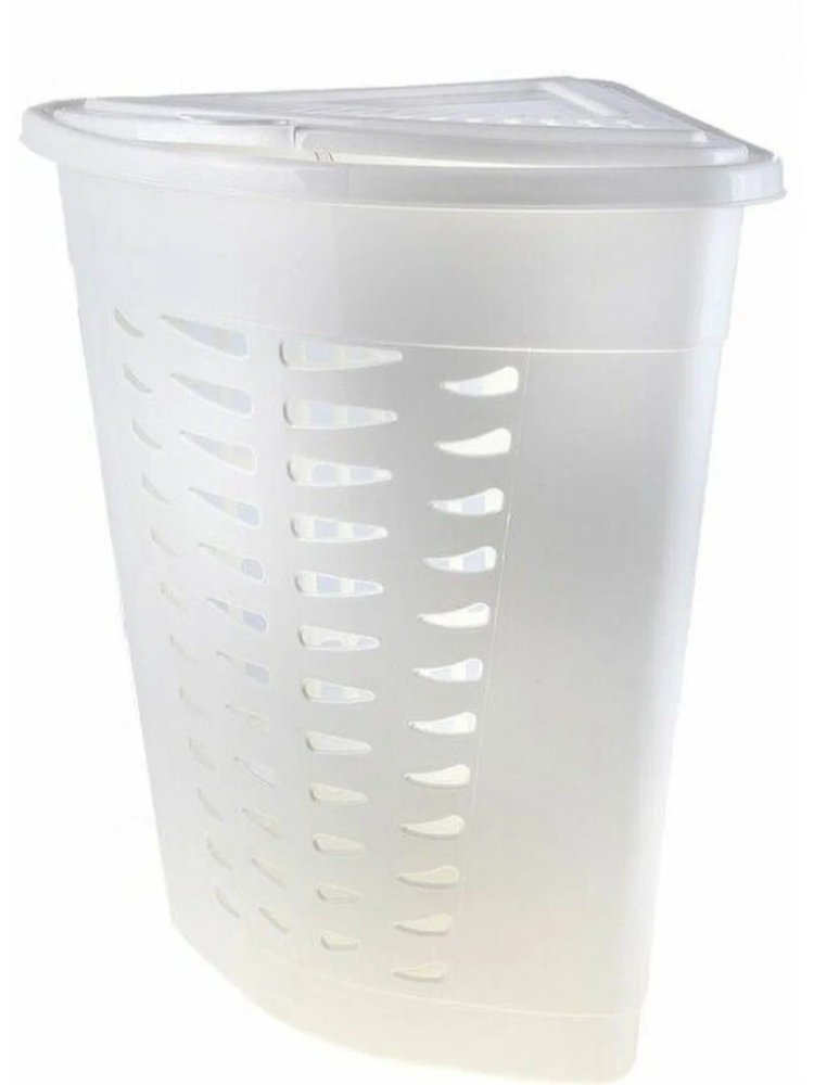 Корзина д/белья 45л угловая с крышкой, белая 587077