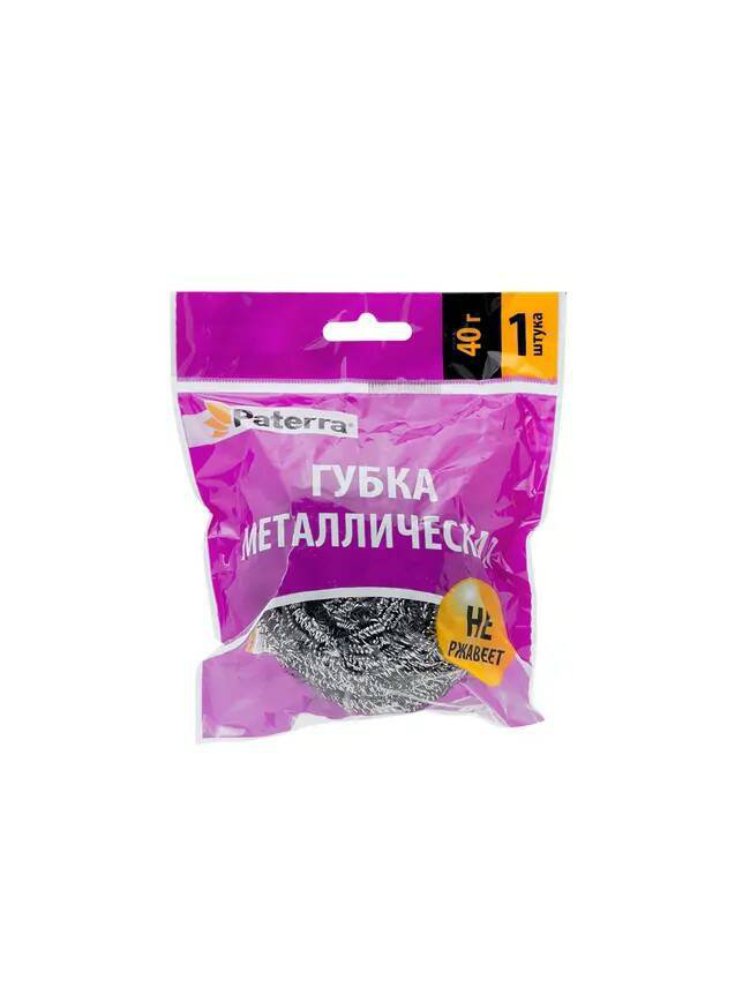 Металлическая спиральная губка 40 г из нержавеющей стали: эффективно удаляет стойкие загрязнения и не ржавеет даже при интенсивном использовании.