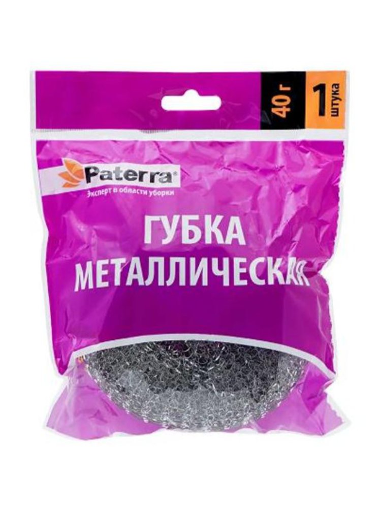 Губка для посуды металлическая PATERRA, оцинкованная, плетенка 40г