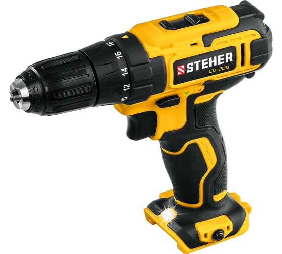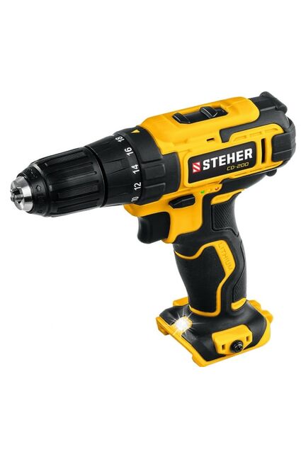 Дрель-шуруповерт STEHER 20В, без АКБ CD-200 используется для сверления отверстий в различных материалах, для монтажа и демонтажа резьбовых соединений. Быстрозажимной патрон обеспечивает удобную замену оснастку без применения инструмента. Наличие 18+1 положений крутящего момента позволяет выбирать максимальный момент затяжки крепежных изделий в зависимости от вида работ и применяемых материалов. Функция реверса упрощает выведение застрявшего в материале сверла.
