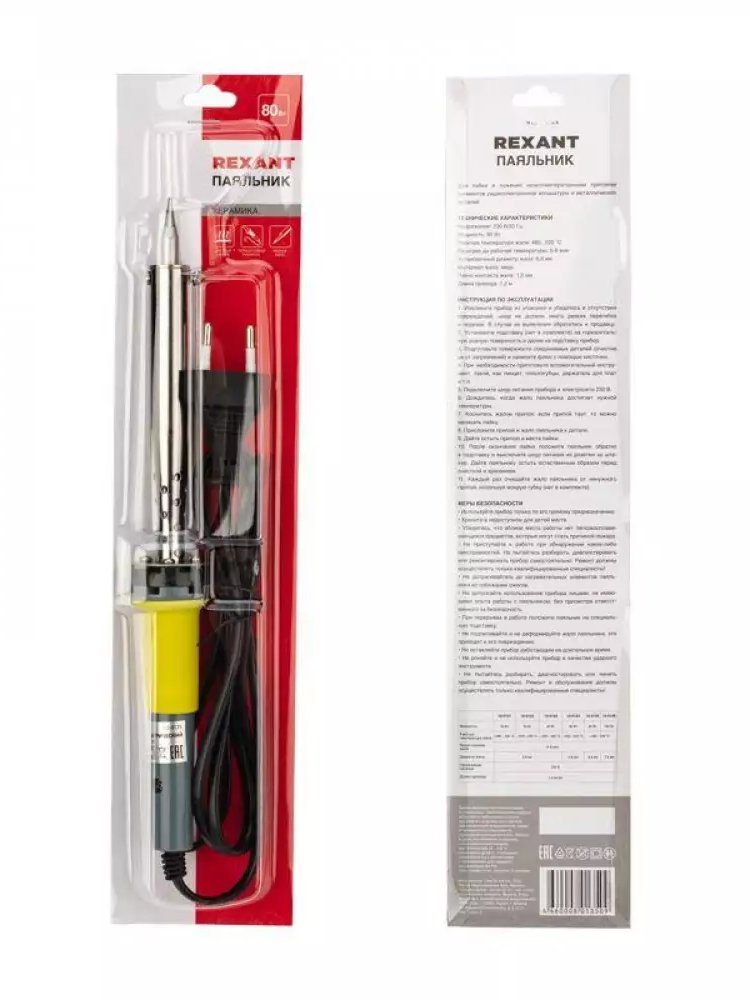 Электропаяльник 80Вт 230В, долговечное жало, керам.нагреватель, серия "МАСТЕР" REXANT