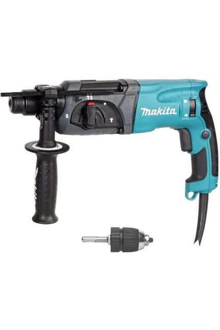 Перфоратор Makita HR2470X19 198519 функционирует как отбойный молоток и дрель. При обратном вращении (реверс), двигатель работает с той же скоростью и крутящим моментом. Двойная изоляция обеспечивает безопасность в эксплуатации. Перфоратор имеет удобный переключатель, с помощью которого выбирается нужный режим работы: сверление, ударное сверление или долбление. Якорь и угольные щетки, а также все внутренние детали инструмента защищены от пыли. Перфоратор 780 Вт, SDS-Plus, 3 режима, бурение до 24 мм, кейс и сменный патрон, высокая производительность и комфорт для строительных работ.