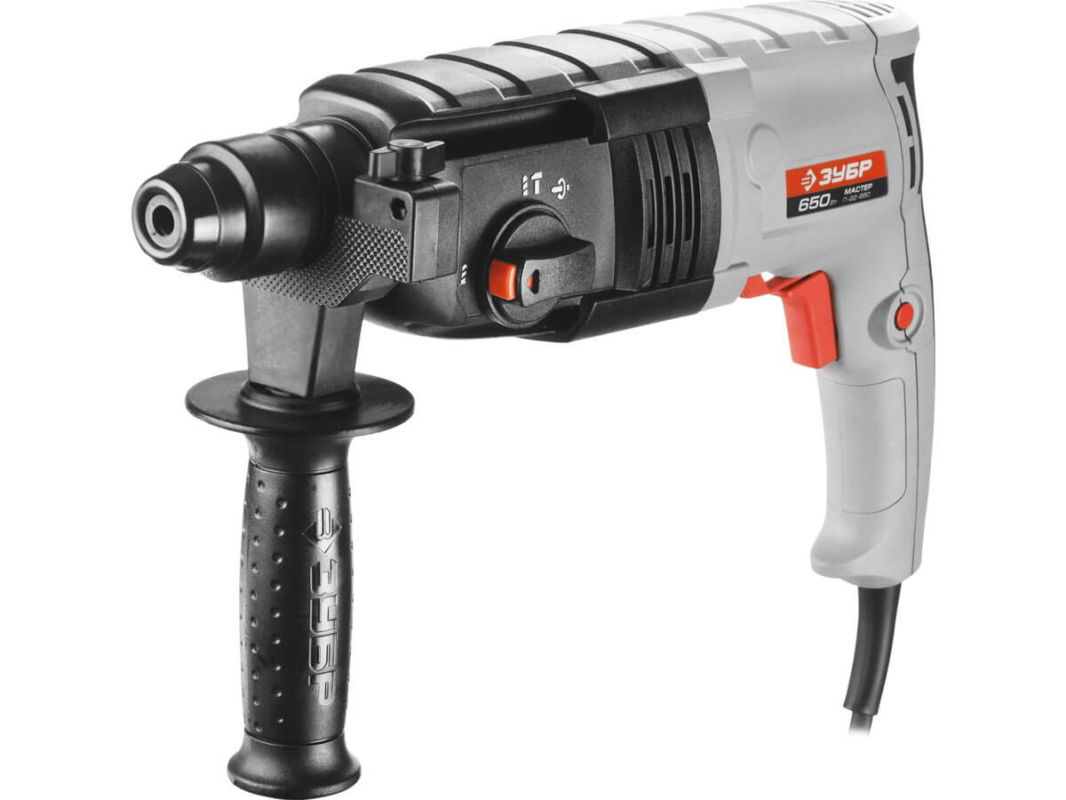 Перфоратор ЗУБР МАСТЕР помогает бурить отверстия, долбить бетон, сверлить отверстия в металле и дереве. Благодаря патрону SDS-plus, смена оснастки не занимает много времени. Предохранительная муфта прекращает передачу крутящего момента при заклинивании бура, что предотвращает поломку инструмента и защищает оператора. В комплект входит ограничитель глубины, с помощью которого можно делать одинаковые отверстия или аккуратно сверлить на заданную глубину. Универсальный перфоратор 650 Вт с тремя режимами, SDS-plus, кейсом, компактный и удобный для работ по бетону, кирпичу, с плавной регулировкой.