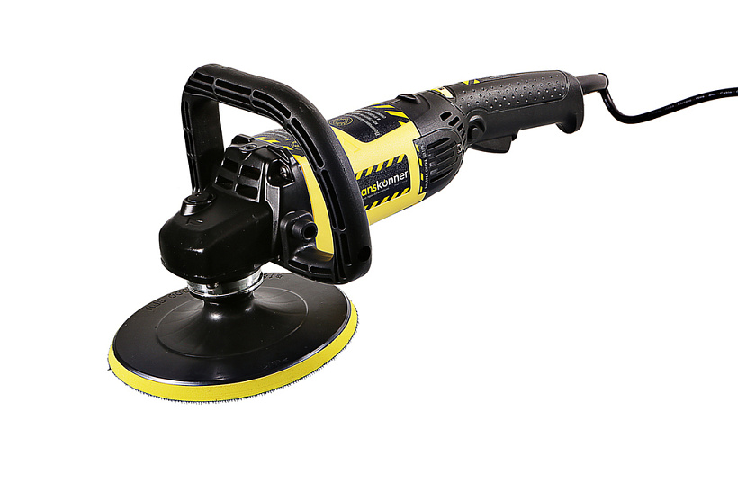 Hanskonner HAG918CP – мощная универсальная полировальная машина под рабочий диаметр диска 180 мм. Имеет компоновку с длинной рукоятью и рассчитана под двуручный хват, благодаря чему достигается наилучший контроль в процессе работы. Также, комфорту эксплуатации инструмента, способствуют его выверенные массогабаритные показатели, нейтральный центр тяжести и отличная эргономика. Модель оснащена производительным 1400 Вт электромотором, запас мощности которого позволяет эффективное использование машины не только при полировке мелких элементов, но и при обработке больших плоскостей. Важной особенностью полировальной машины Hanskonner HAG918CP является наличие электронного блока EPM (Electronic Power Manager), который позволяет поддерживать стабильную частоту вращения на валу шпинделя под нагрузкой, обеспечивает плавный пуск и возможность регулировки оборотов в широком диапазоне (500 – 3000 об/ мин) – пользователь может настроить оптимальную частоту вращения вала шпинделя в соответствии с об