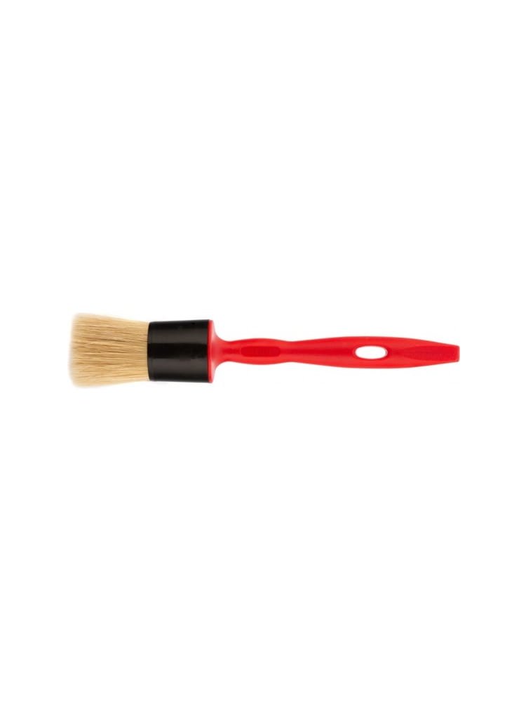 Кисть обладает высокой износостойкостью, отлично держит форму и набирает оптимальное количество материала. Это позволяет добиться профессионального качества покрытия без потёков и полос. Круглая форма идеально подходит для труднодоступных мест и углов.
