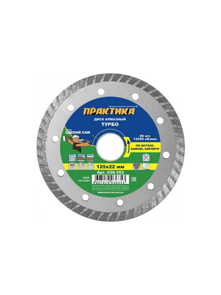 Повысьте производительность и качество резки с алмазным турбированным диском 125*22 мм, который идеально подходит для работ по бетону, кирпичу, керамике и плитке. Благодаря высокопрочному турбированному сегменту диск обеспечивает быстрый, чистый и точный рез, минимизируя сколы и повышая эффективность труда.