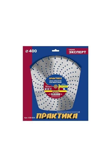 Серия «Эксперт». Тип TURBO-Сегмент. Сегмент 10мм. ГОСТ 10110-87. Специализированные диски для профессионального применения по бетону, армированному бетону, искусственному и натуральному камню. Лучшая серия для сложных работ по материалам неоднородного состава. Для большого объема работ. Не рекомендован для абразивных материалов. Сухой рез. Охлаждение водой увеличивает ресурс диска. Диск 400 мм для резки бетона, армированного бетона и кирпича, турбосегменты для чистого среза и длительной работы на профессиональном оборудовании.