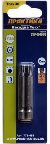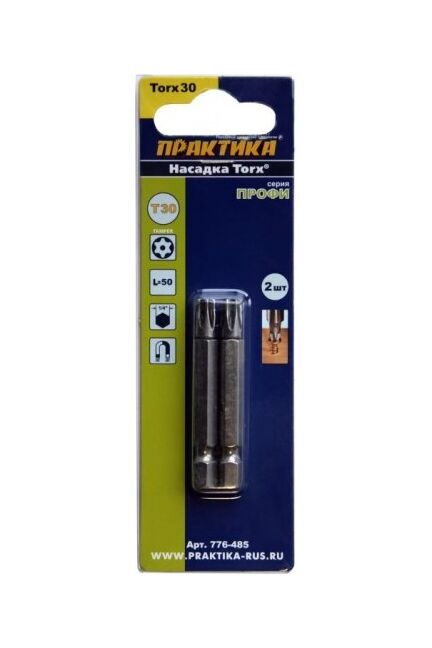 Набор бит TORX T30 50 мм, 2 шт: высокая прочность, точная посадка, подходит для стандартных отверточных держателей и профессионального использования.