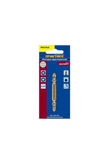 Двусторонняя бита PH-2/PZ-2 65 мм с титановым покрытием — идеальный выбор для точных и прочных работ с различными видами крепежа. Оптимальна для строительных, монтажных и отделочных задач, обеспечивая быстрый и удобный переход между различными типами шлицов без смены инструмента.