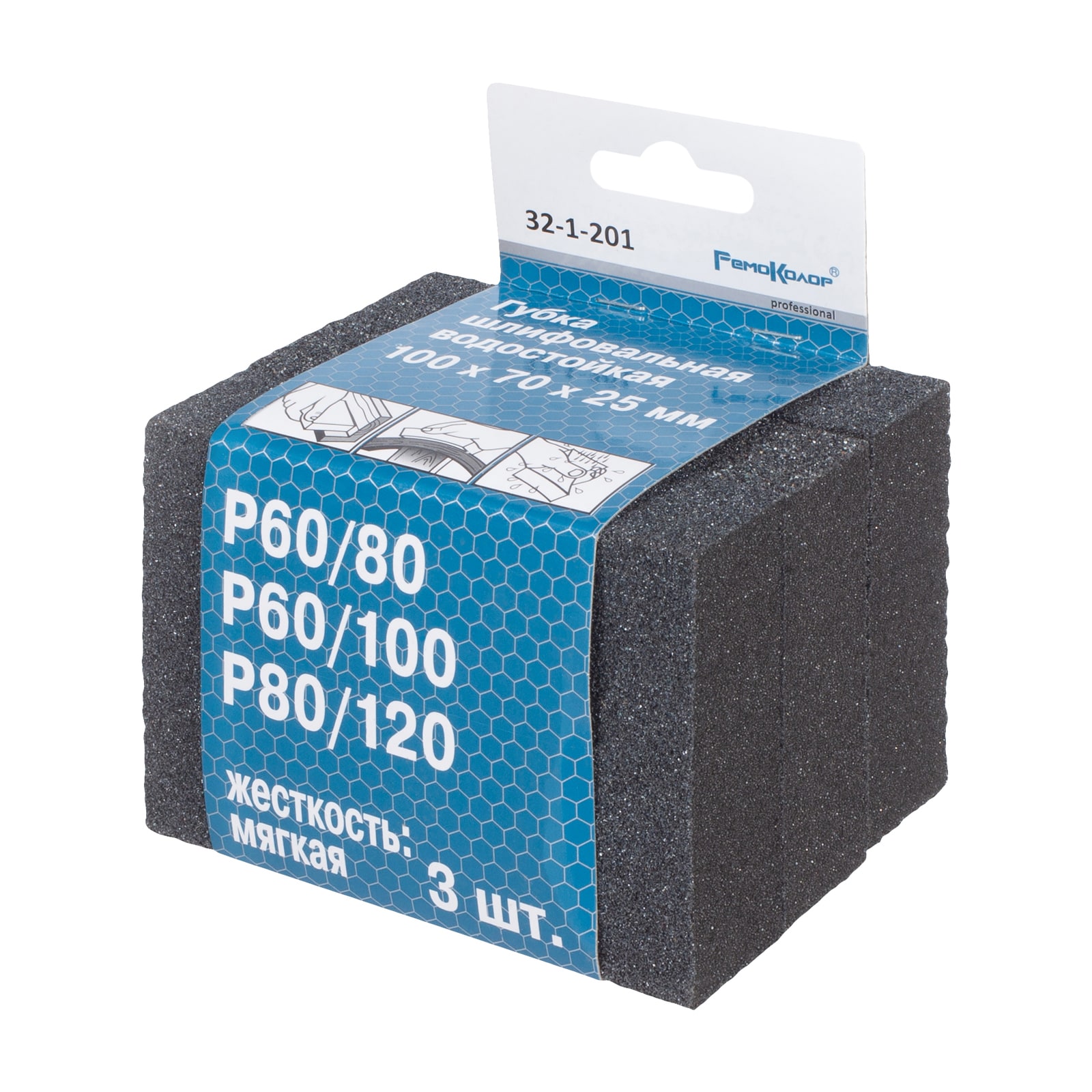 Абразивные шлифовальные губки представляет собой ручные материалы для мокрого и сухого шлифования поверхностей со сложным профилем, а также для обработки кромок. Изготавливают они из пористого материала, покрытого абразивами. Рабочие грани могут иметь как одинаковую, так и различную зернистость, что позволяет осуществлять грубую, промежуточную или окончательную обработку. Материал изготовления: Абразивный материал - корунд (оксид алюминия), основа из полиуретана Назначение: Основная область применения губок — это легкая шлифовка, матирование дерева, лака, краски и грунта.