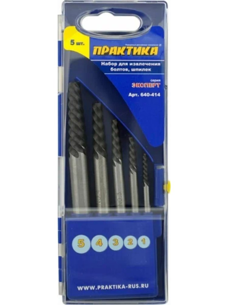 - В наборе 5 экстракторов различных размеров — подходят для широкого спектра крепежа.