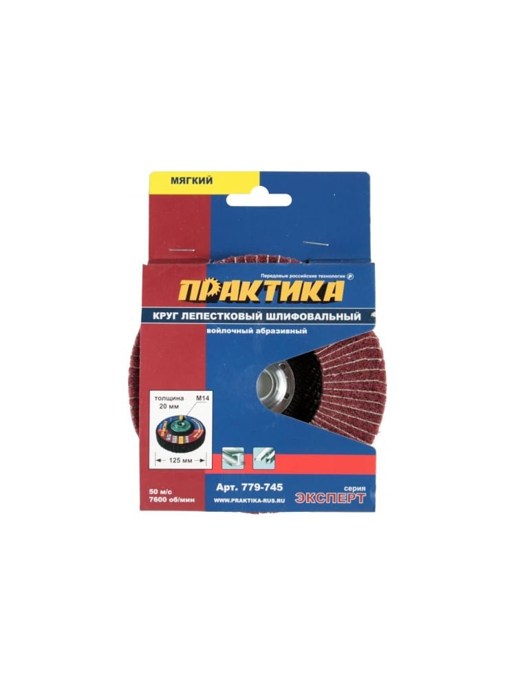 Круг лепестковый полировальный ПРАКТИКА 125*20 мм, М14, войлочный, абразивный, мягкий
