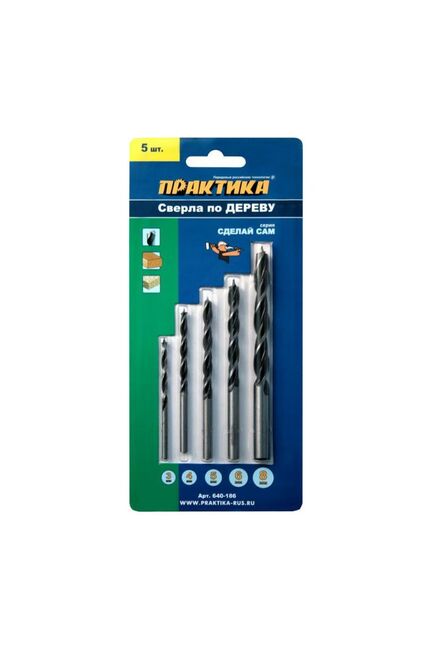 Набор сверл по дереву ПРАКТИКА "Сделай сам", 5 шт, 3,4,5,6,8 мм в Переяславка